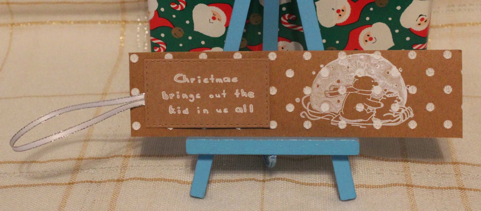 Created this Tag/Bookmark using White ink on Kraft, Simon Says Stamp Stitched Rectangles die for sentiment tag, Inkadinkado stamps & ribbon.