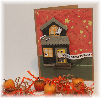 Added detail to this Haunted House Halloween Card. Used Lawn Fawn Build-A-House dies and LF Tiny Halloween stamps/dies.
